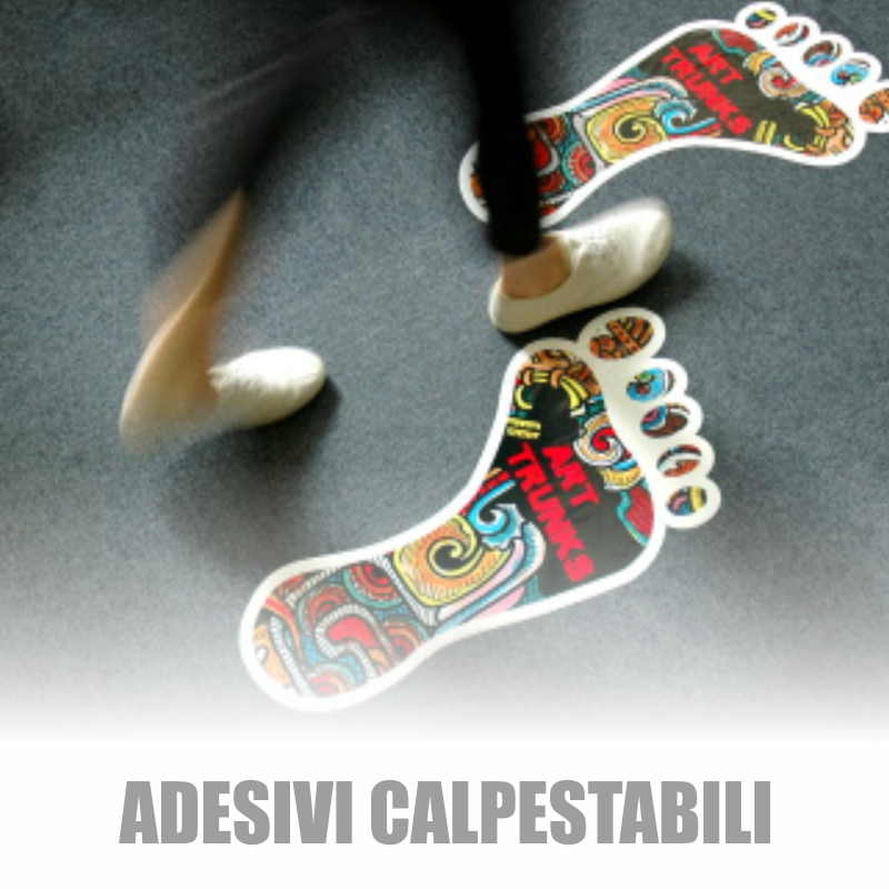Printed on vinyl polymer with rolling walkable, these adhesives are suitable for both indoor and outdoor use and for use in the long and short term. Usually used to advertise in the big fairs or supermarkets, can also be used for purposes not links, generally to provide guidance in schools, hospitals and large companies.