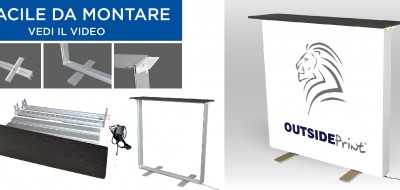 from 2021 OutsidePrint ha inserito nel proprio catalogo online anche questo prodotto che è divenuto subito richiestissimo per l’ottima leggerezza e praticità d’utilizzo. Bastano infatti pochi minuti per montare il desk promozionale, senza alcun bisogno d’aiuto e di attrezzi.