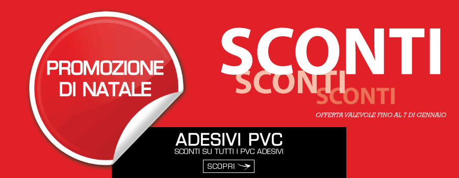 Apriamo quindi il Black Friday con vetrofanie a -65% и adesivi per superfici piane a -50%. Scendono anche i prezzi degli adesivi One Way, от клеи проходимые и adesivi grigi satinati. Anche gli adesivi per pareti scendono del 36%.