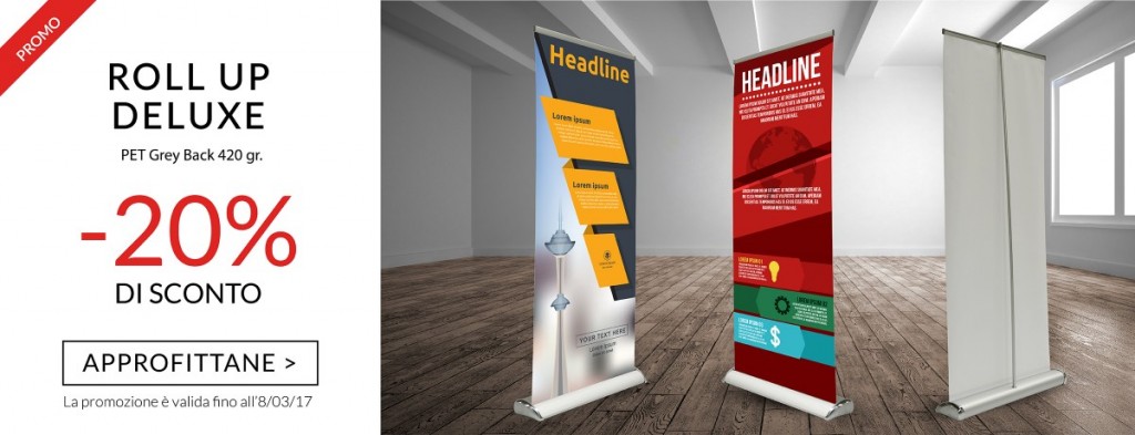 You have until 8 March to take advantage of new deals available on OutsidePrint. Questa settimana trovi sullo store online della tipografia online le insegne a bandiera e i roll-up a prezzi davvero competitivi.