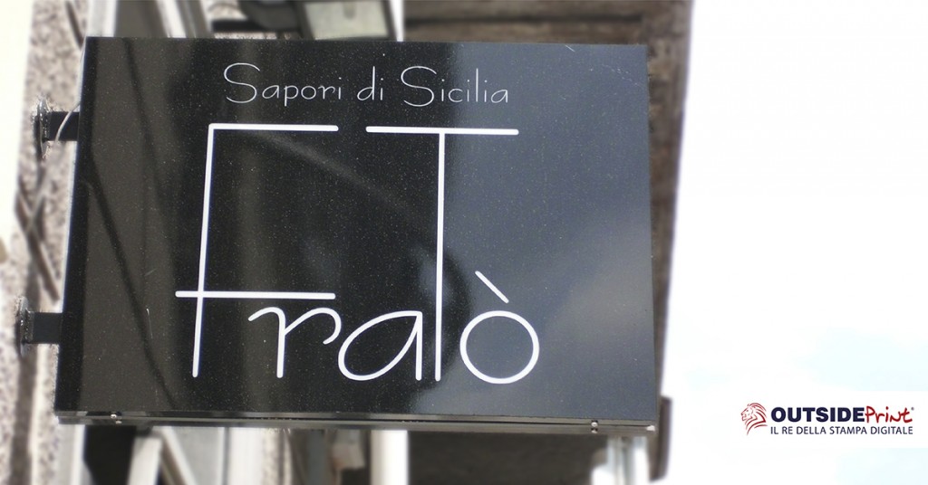 Le insegne a bandiera di OutsidePrint sono create su misura e costruite con pannelli in alluminio tagliati al vivo o rifiniti con una cornice in acciaio inox, lucido o satinato, o a cassonetto luminoso a LED.