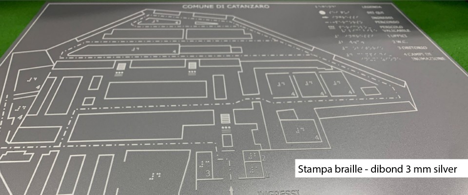 Sul nostro sito e-commerce www.outsideprint.com,,en,twitter.com/outsideprint,,en hai la possibilità di utilizzare la stampa in rilievo su alluminio o Dibond anche per inserire qualche informazione in alfabeto Braille.