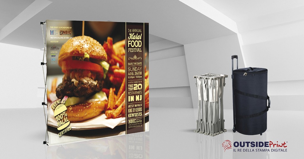 Quando hai bisogno di un espositore utilizzabile anche come parete fondale, quello che ti serve è l’espositore Pop Up con velcro!