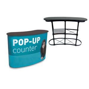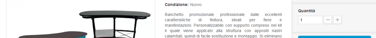 Ideal for trade shows and events, looks like a banquet promotional professional, from very good quality and very easy to install. With a pre-assembled structure folding, è facilmente apribile è resa stabile dalle bacchette incastrabili ad essa. The support surface, gloss black, is foldable in half thanks to a simple hinge is fitted on the lower part.