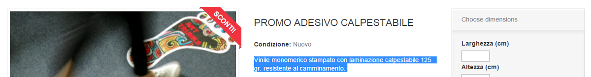 The product however is the most simple but useful at the same time you can imagine: è un vinile monomerico stampato con le nostri stampanti della mutho e inchiostro eco solvent con laminazione calpestabile 125 gr. resistant walkway.
