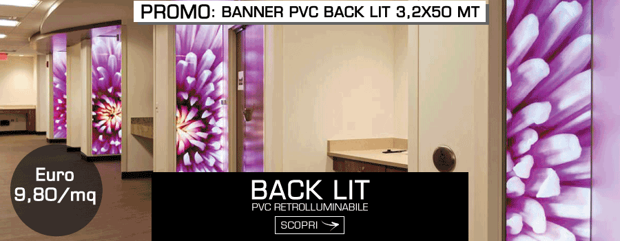 On our e-commerce perform backups custom lit banner is quick and easy. In a few clicks you can choose the size, the cutting options and upload the file with the graphics that you want to print. It may require different types of surface finish according to the requirements for mounting: sharp cut, cutting heat-sealed with slots or eyelets. Approfitta ora della promozione online.