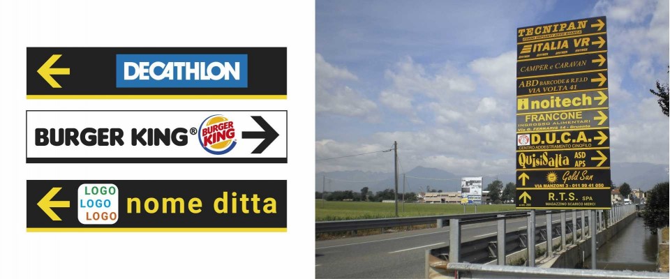 Very popular are the cartelli segnaletici stradali small but effective, 125x25cm the classic or the double 125x50cm, used to indicate the site of a company or commercial activity.