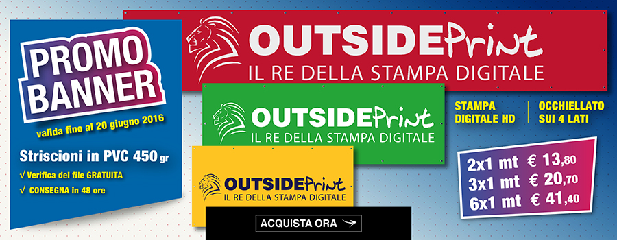 Se cerchi uno striscione particolare sullo store di Outside Print trovi anche striscioni in TNT, striscioni microforati mesh, striscioni Back-Lit e striscioni in tessuto cotone: scoprili tutti.