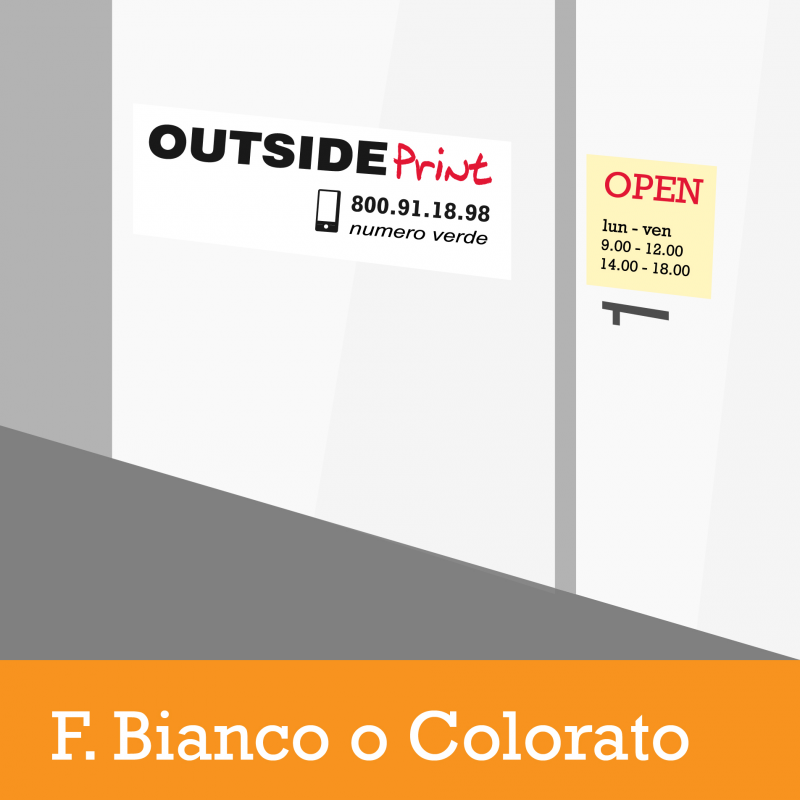 Adesivo PVC monomerico stampato in alta definizione per l’applicazione su superfici in vetro, con applicazione dall’interno e stampato in speculare per consentire la visione corretta dall’esterno.